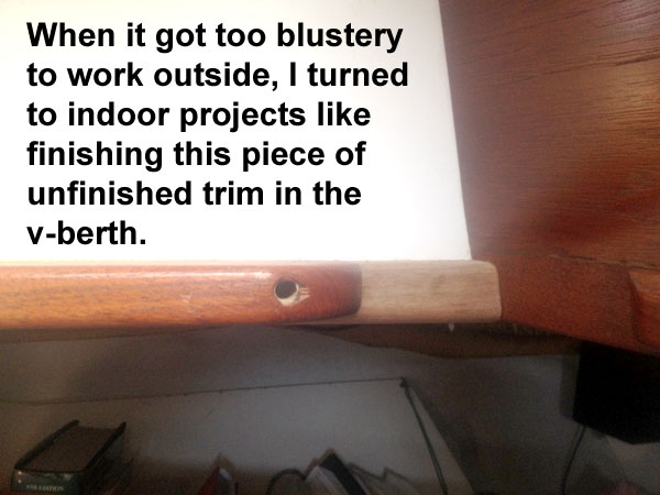 Some rainy and windy days slowed progress. One of the new anchor shackles didn’t fit